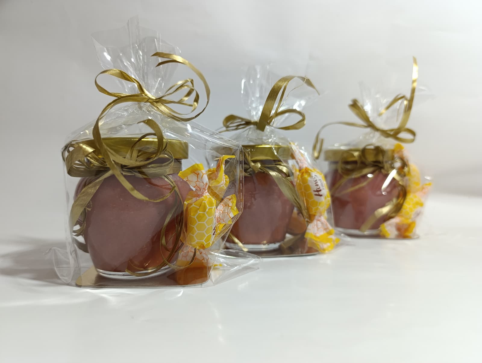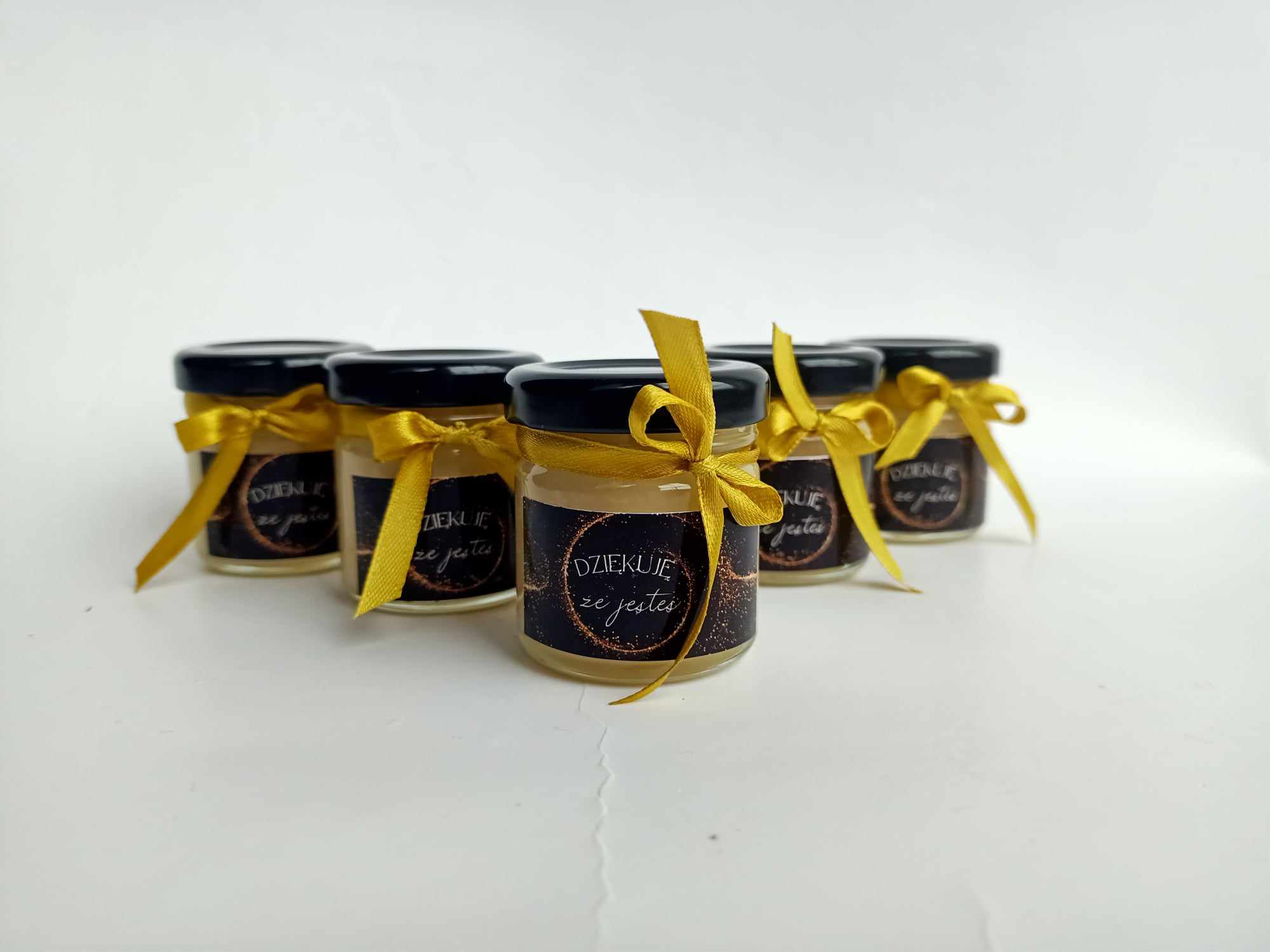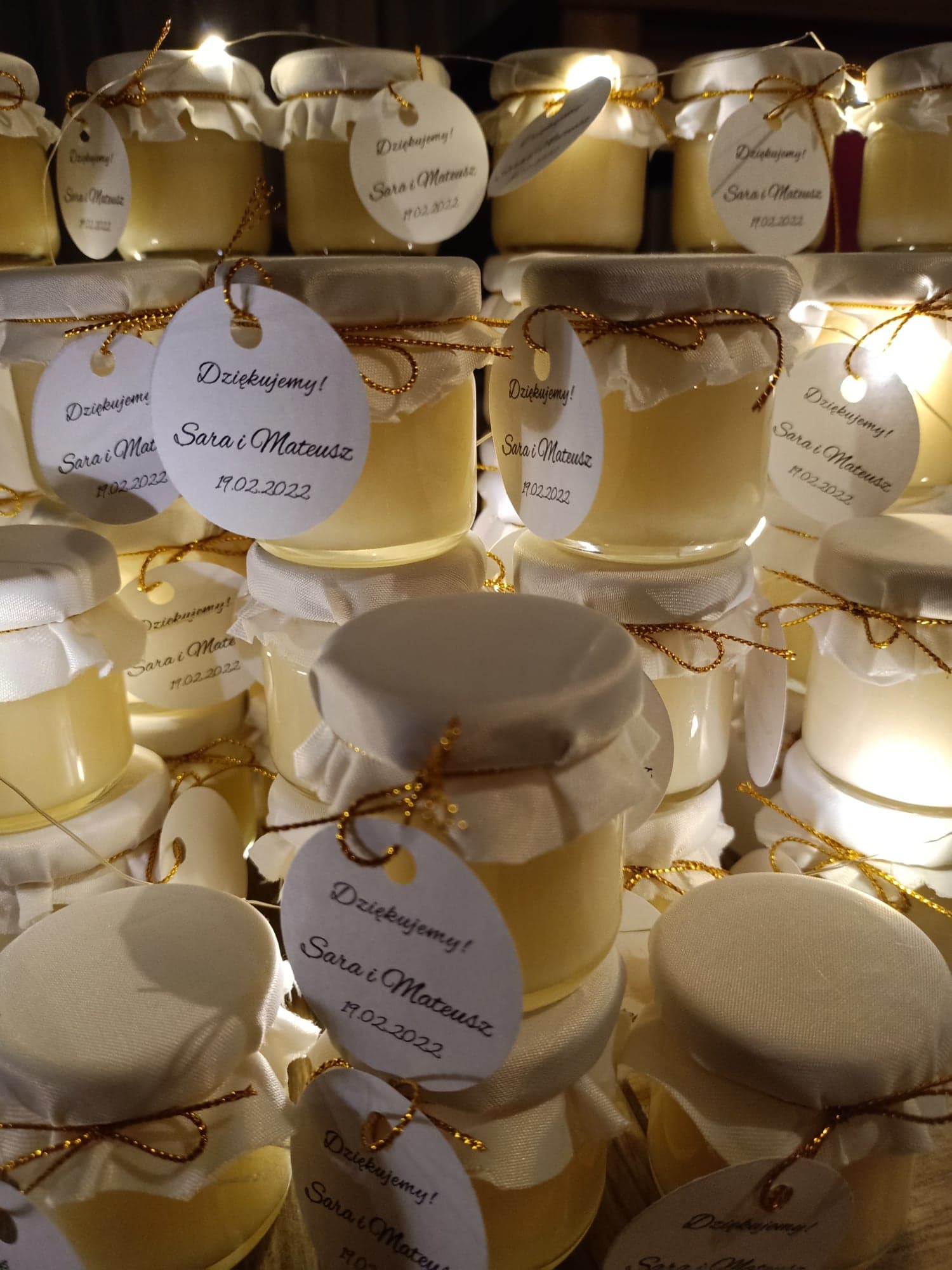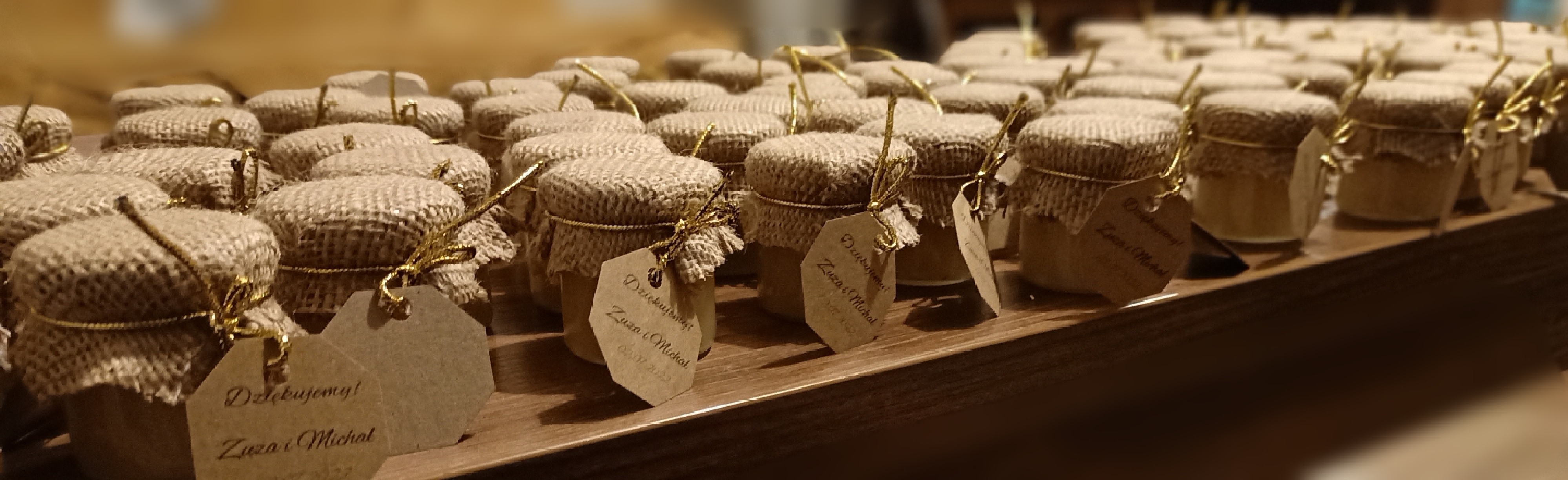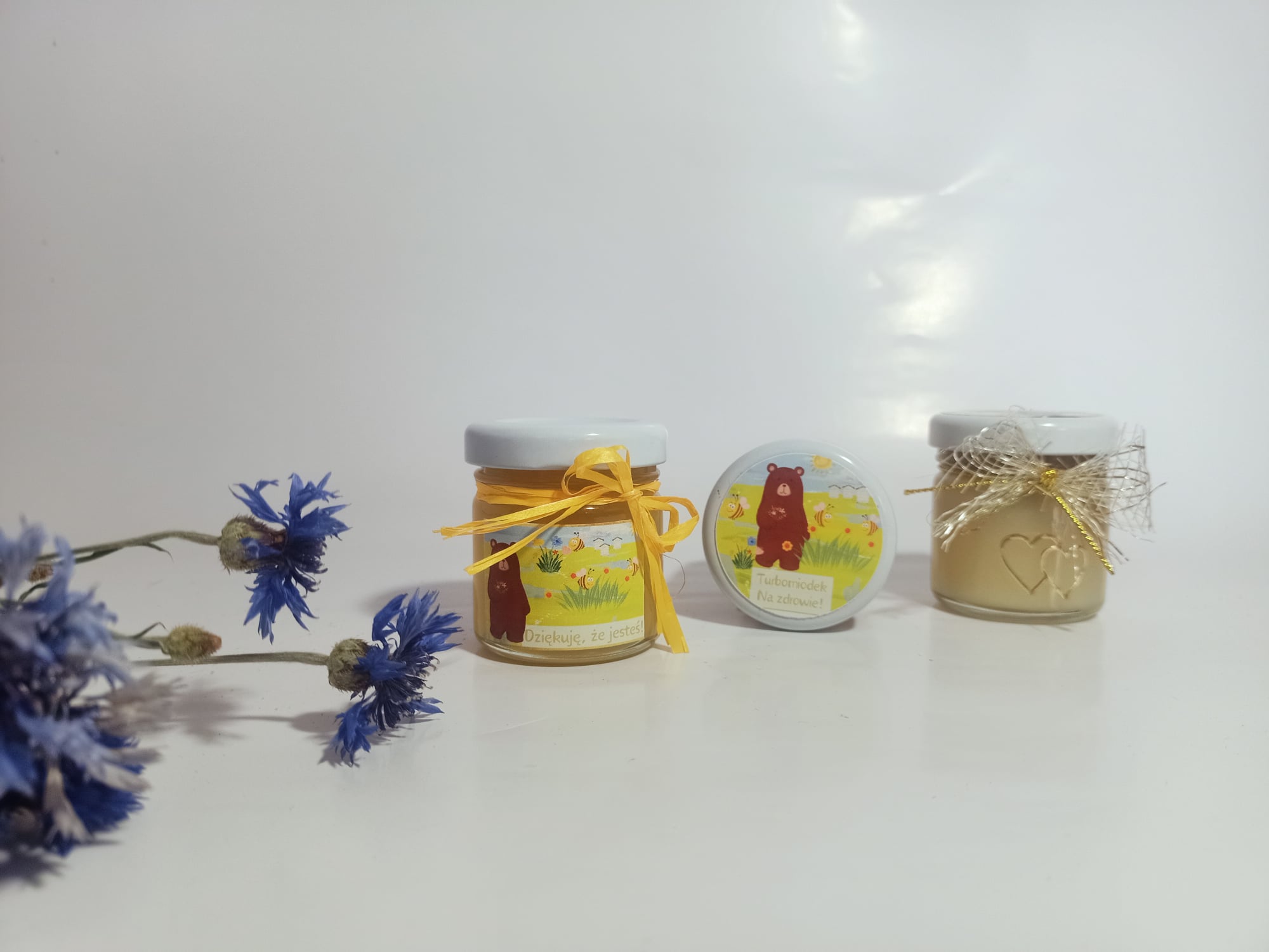 Małe, urocze słoiczki miodu, które są idealnym upominkiem na podziękowanie dla gości weselnych, klientów czy uczestników wyjątkowych wydarzeń.