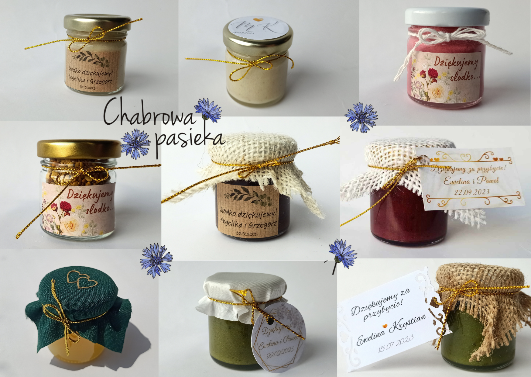 🟡 Dowolna kolorystyka – słoiczki ozdobione w stylu dopasowanym do okazji